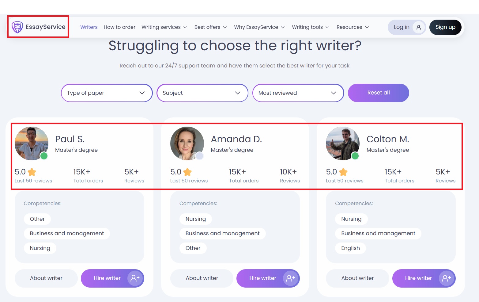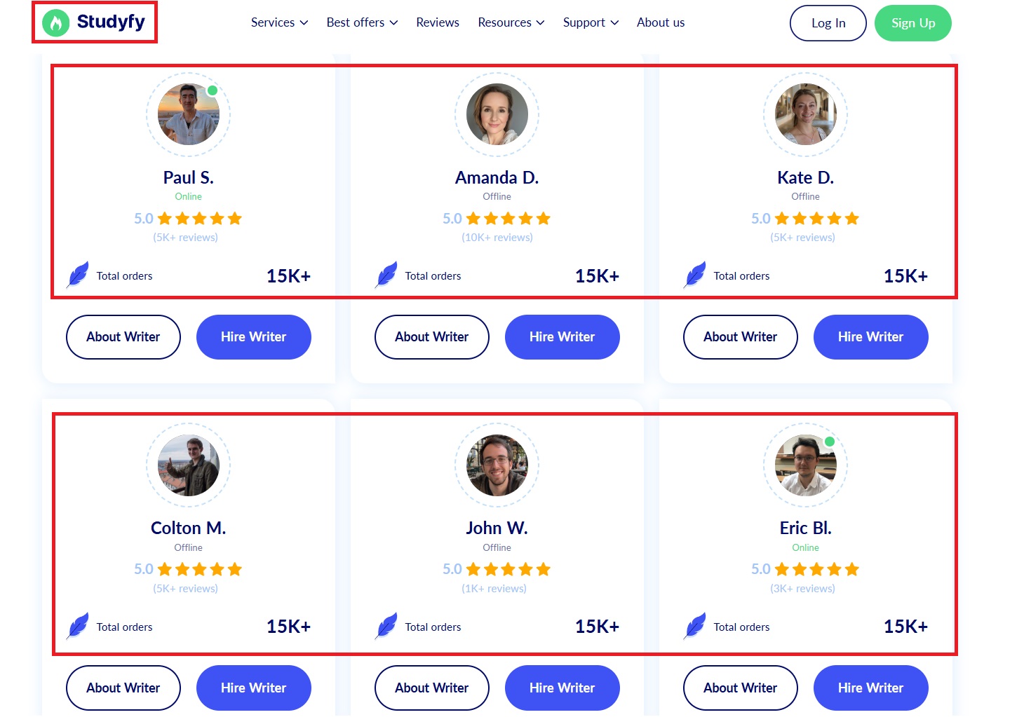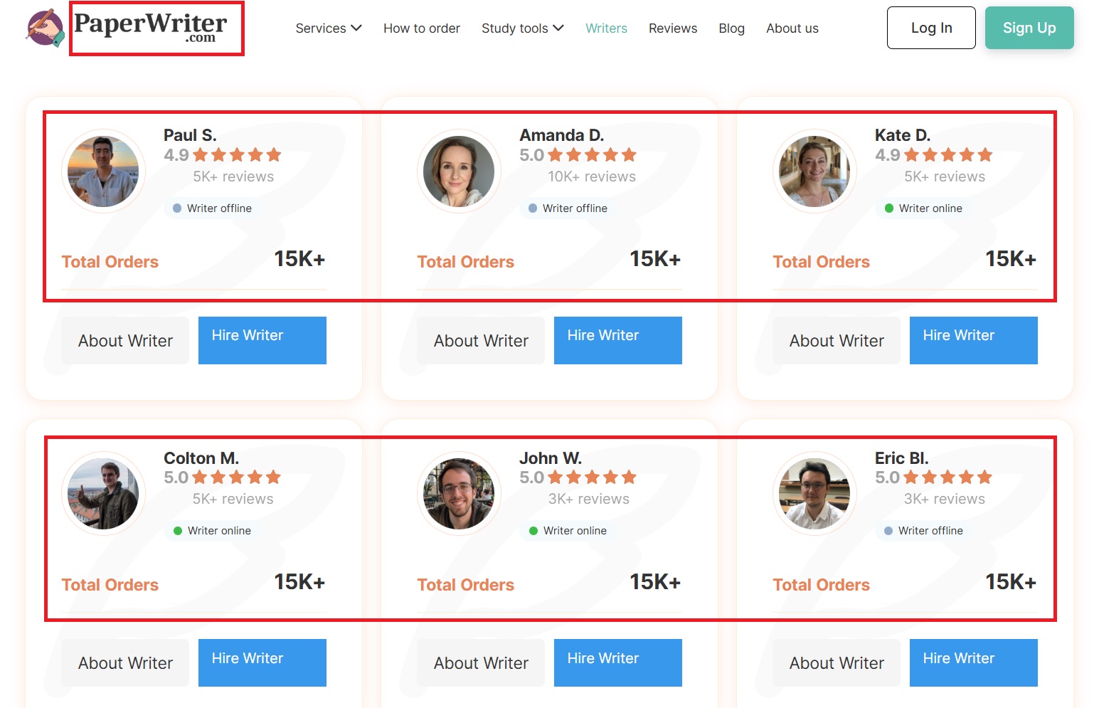 One of the strongest indicators that these websites are not independent is the mirrored writer profiles that appear across EssayPro, PaperWriter, EssayService, Studyfy, WritePaper, and DoMyEssay.