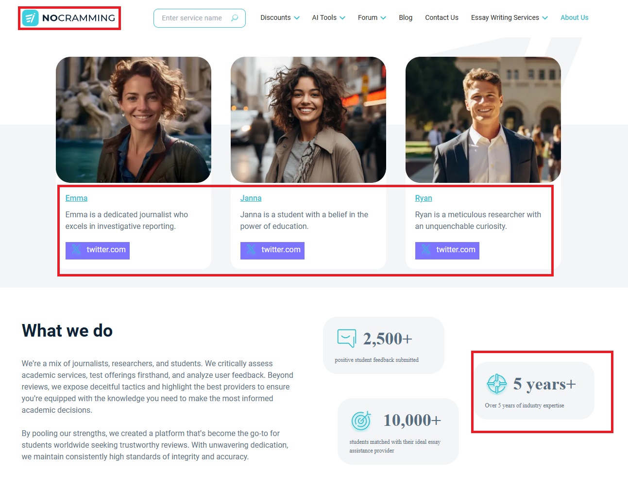 Nocramming.com claims 5+ years in operation and “experienced experts delivering trusted reviews.” However in nocramming.com/about-us: